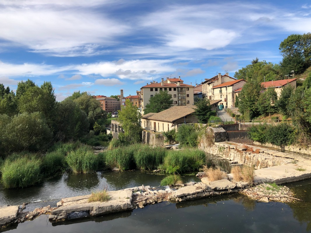 In Trinidad de Arre maken we een korte stop. Wat een charmant dorpje langs de rivier, met een mooie brug en een kerk waar we door een tunneltje langs wandelen. Even later staan we in Pamplona en ontmoeten we Emma opnieuw. Ze is bij de dokter geweest voor haar voeten en het is fijn haar nog even te zien voor we doorgaan. Samen drinken we koffie in de stad.