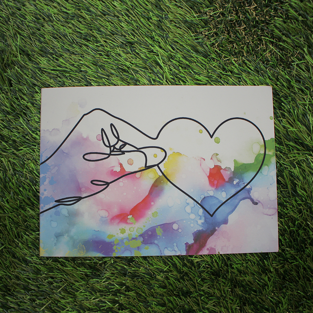 Afwerking: gerild en gevouwen naar A6 formaat (105 x 148 mm)